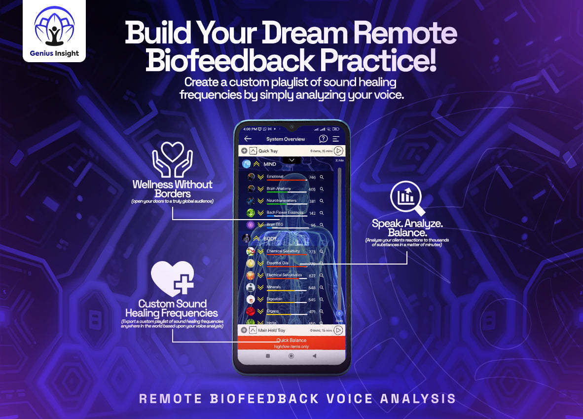 If you’re struggling with mood swings, fatigue, weight gain, or sleep disruption, you’re not alone — and you don’t have to accept it as “just part of aging.” The Genius Insight App taps into the wisdom of your own voice to identify energetic imbalances related to your hormones and creates a personalized frequency therapy plan to restore balance from the inside out. Whether it’s supporting your adrenals, thyroid, or estrogen-progesterone harmony, Genius helps recalibrate your system naturally — without pills, patches, or guesswork. Within days, many women report feeling more vibrant, grounded, emotionally stable, and finally back in control of their well-being. Once you’ve experienced what it feels like to be in true hormonal harmony, you’ll wonder how you ever lived without it.
